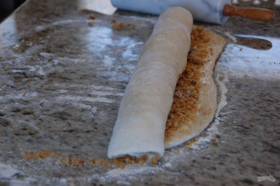 14. Заверните тесто рулетом и хорошенько скрепите края.