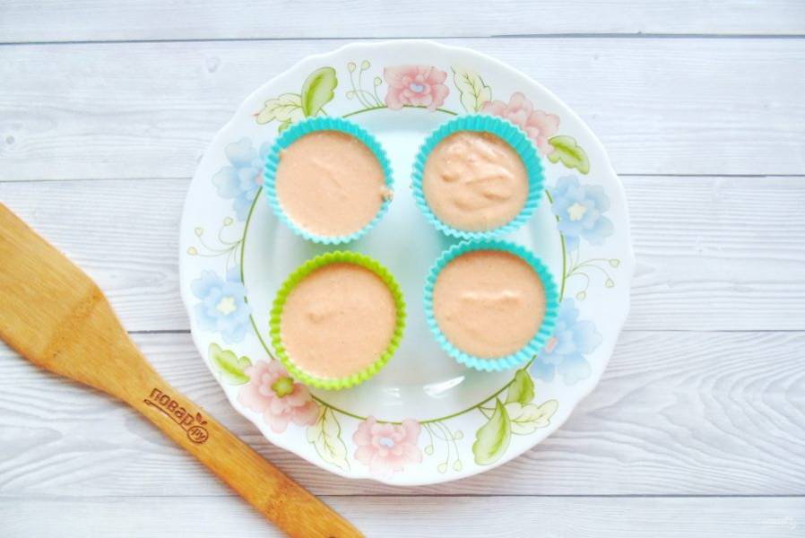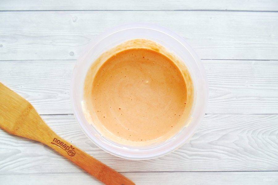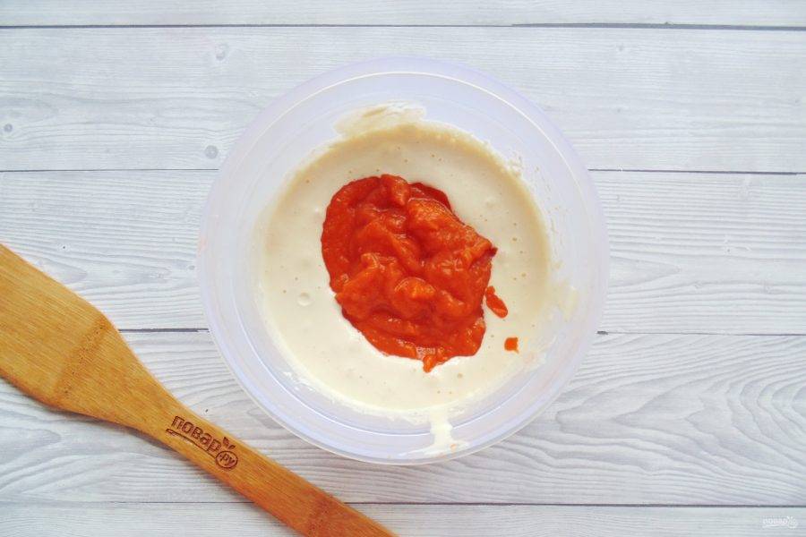 Ещё раз взбейте блендером или тщательно перемешайте творожно-тыквенную массу.