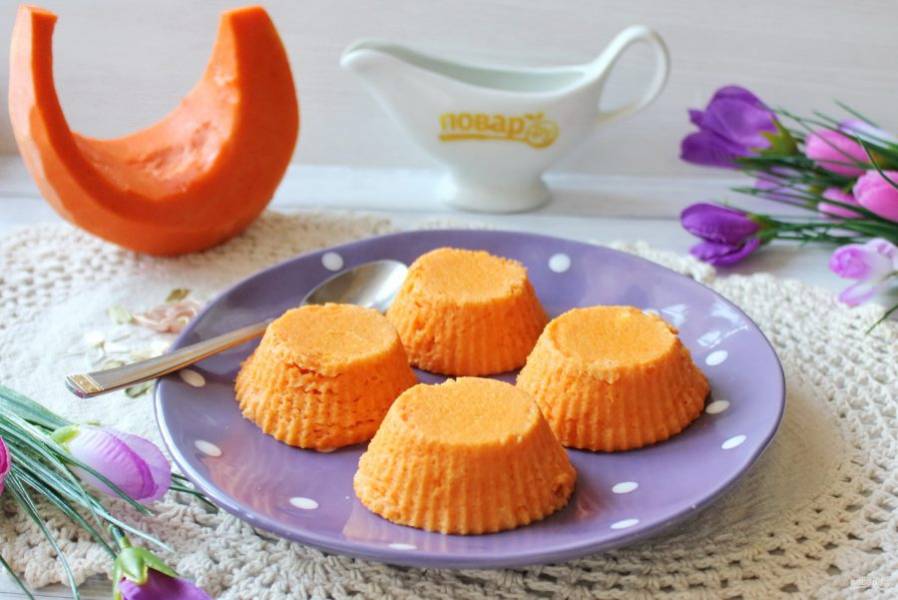Дайте немного остыть и достаньте суфле из формочек. Можно подавать тыквенно-творожное суфле на десерт.