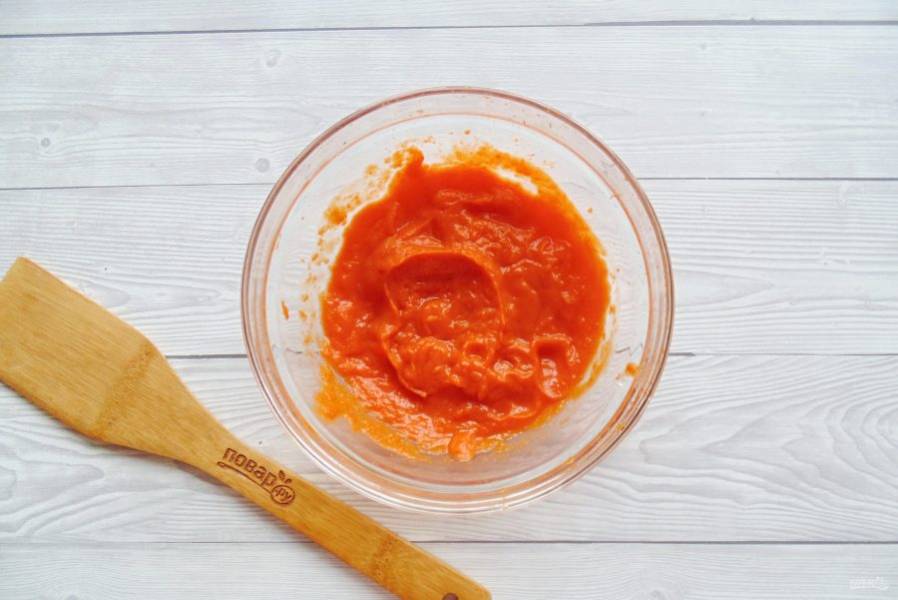 Взбейте тыкву до кремовой консистенции блендером или протрите через сито.
