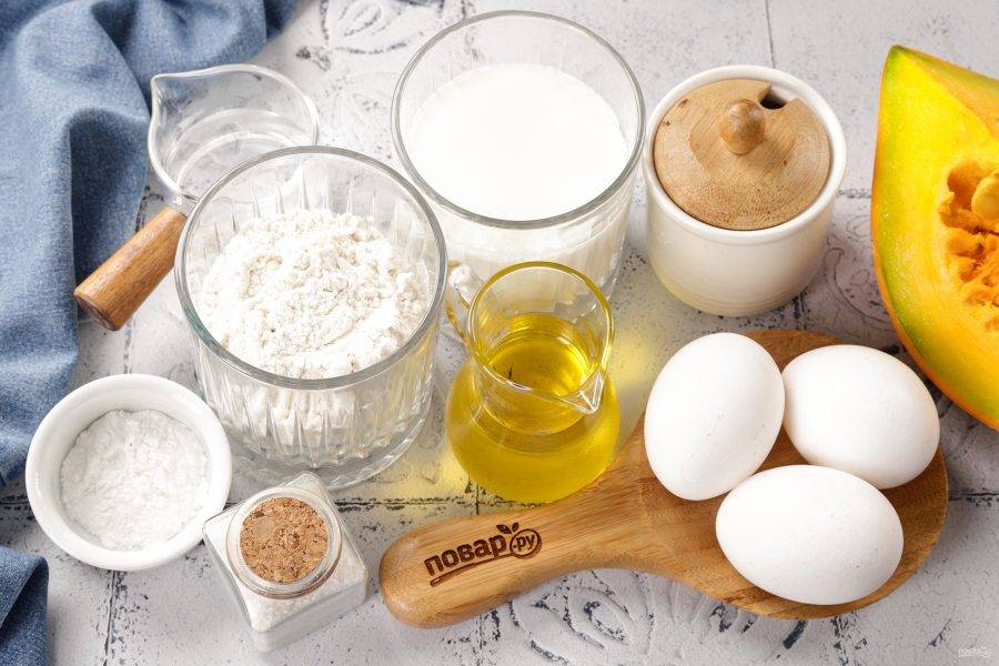 Подготовьте все ингредиенты по списку. Тыкву возьмите сырую, вес указан уже очищенного овоща.