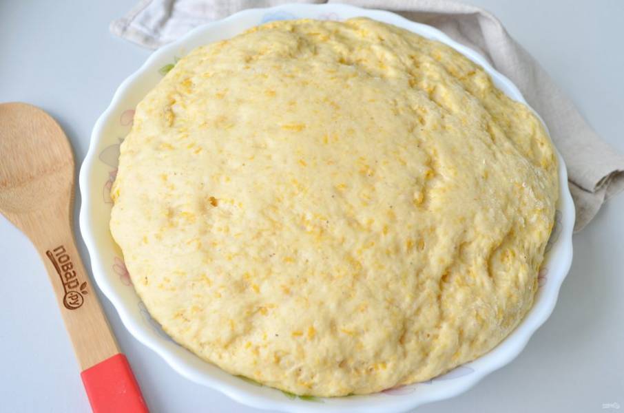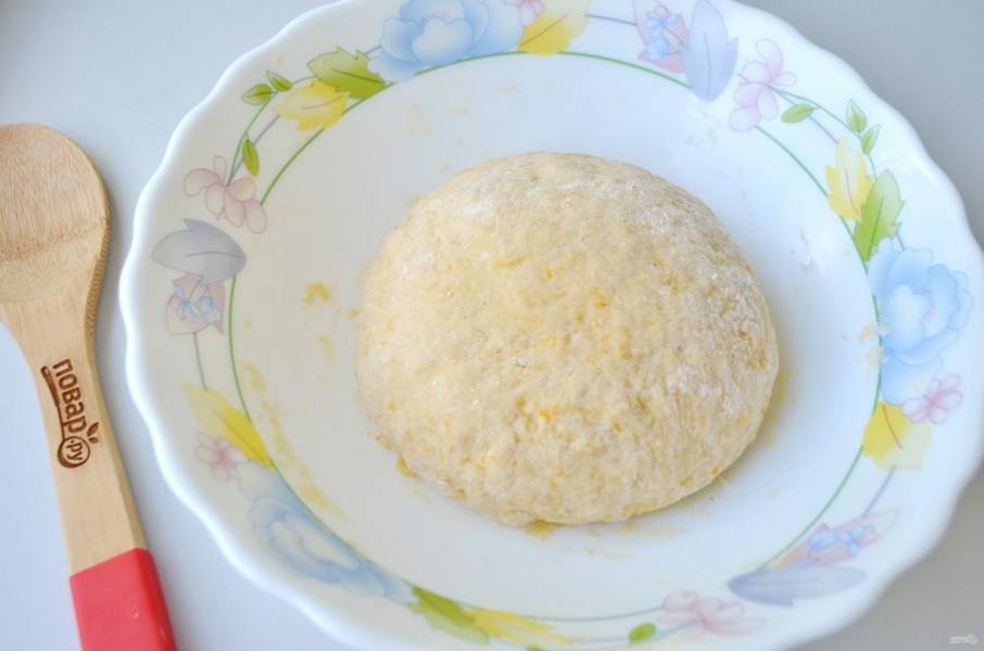 6. Начните замешивать тесто, в процессе добавьте растопленное масло.