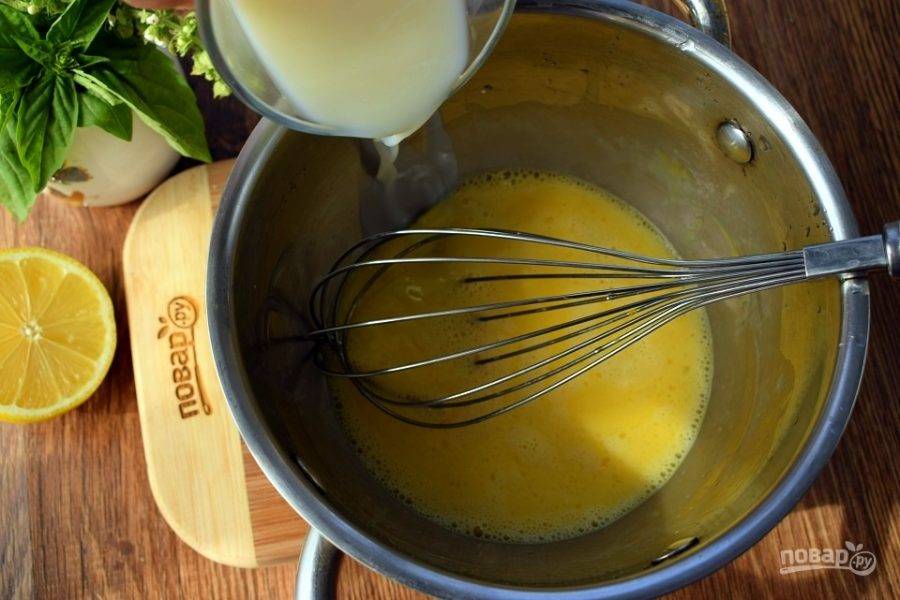 С лимона снимите цедру с помощью мелкой терки, не задевая белую горькую часть, выжмите сок. Соедините с кремом, перемешайте.