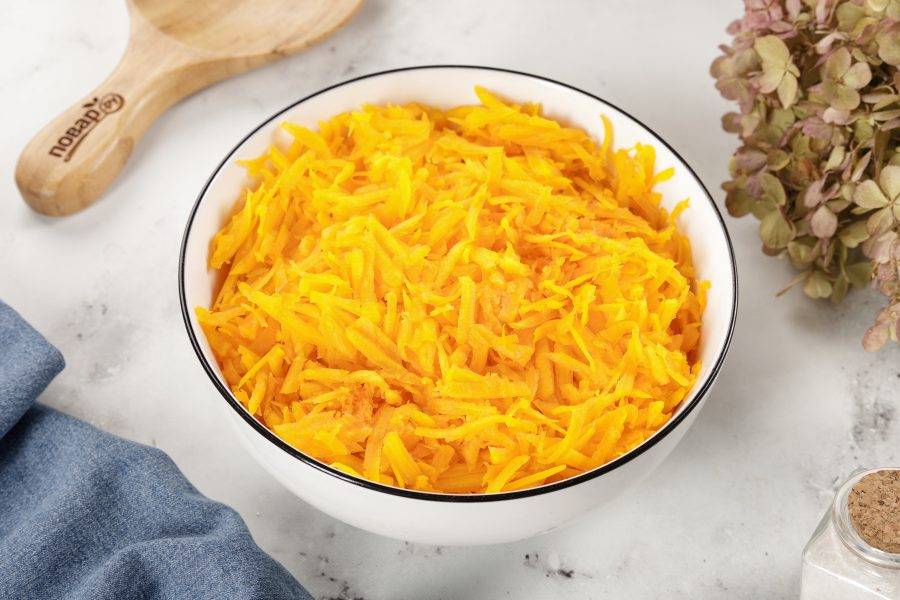У меня сорт тыквы, которая мягкая сама по себе, я её просто натираю на крупной тёрке, без предварительной термической обработки.