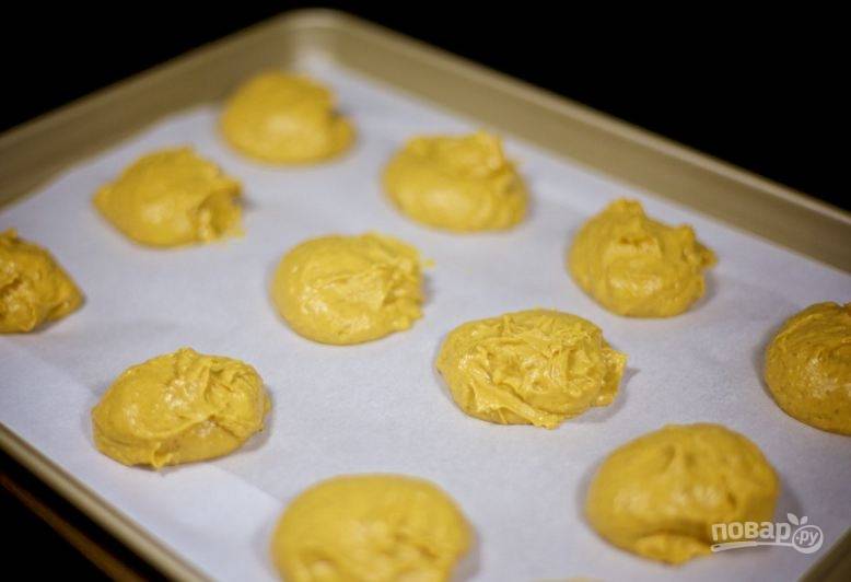 4. Противень застелите пергаментной бумагой, выкладывайте печенье ложкой, размещая их на расстоянии друг от друга. Выпекайте в течение 15 минут при температуре 240 градусов. Приятного чаепития!