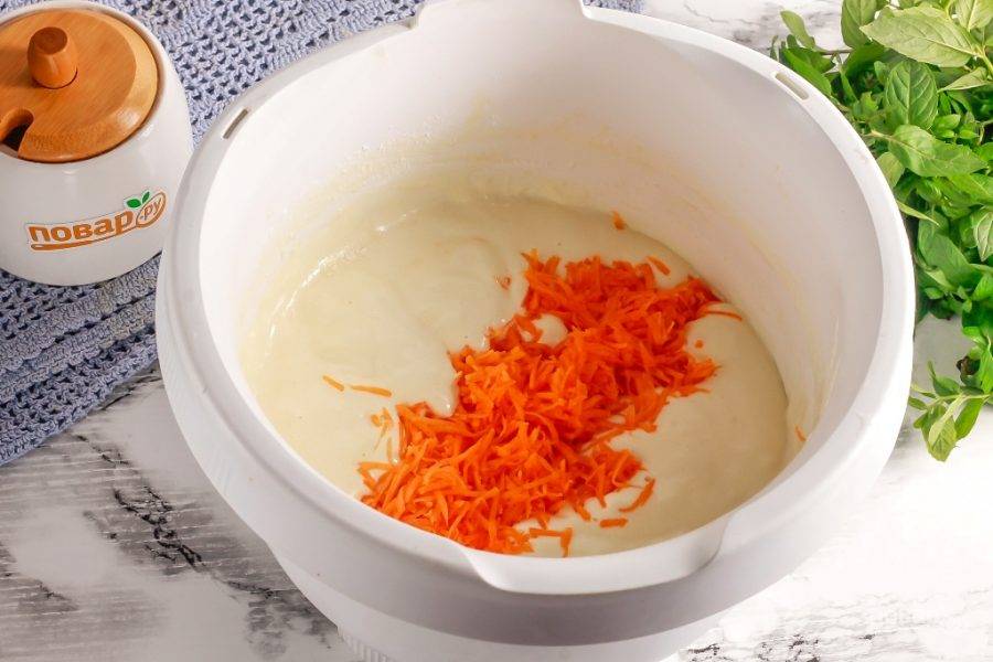 Промойте часть тыквы в воде и очистите от кожуры. Натрите очищенную мякоть на терке с мелкими ячейками в пиалу или креманку. По желанию вы можете пропарить очищенную мякоть в микроволновке примерно 2 минуты и добавить в мягком виде. В любом случае бисквит получится очень вкусным!