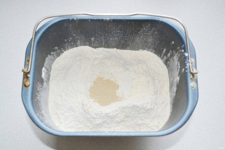 Сверху выложите дрожжи.