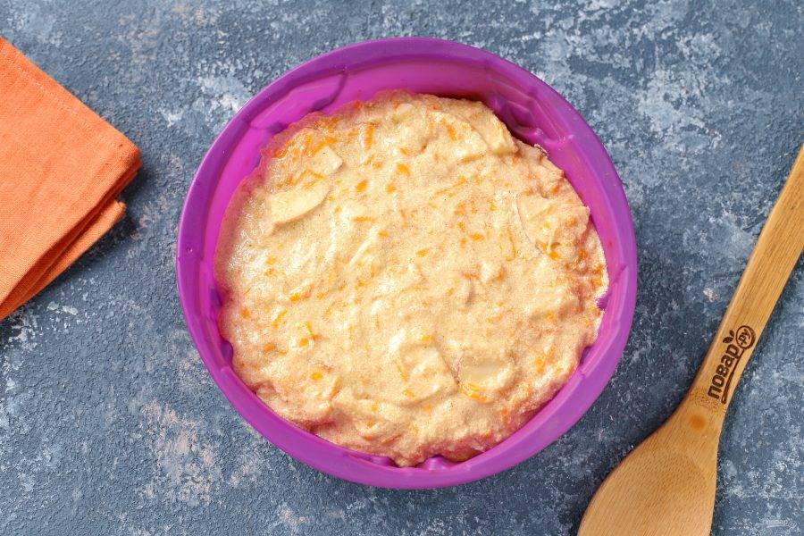 Аккуратно перемешайте тесто ложкой и выложите в смазанную маслом форму. Если у вас силиконовая форма, как у меня, то смазывать не нужно. Выпекайте в духовке при температуре 180 градусов около 40 минут.