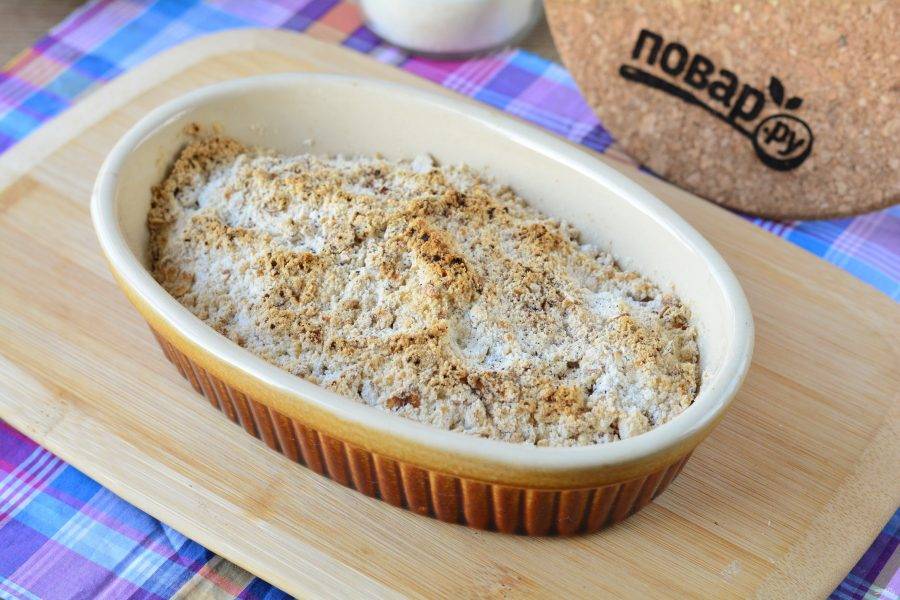 Запекайте крамбл в духовке при 200 около 20 минут, чтобы он подрумянился.