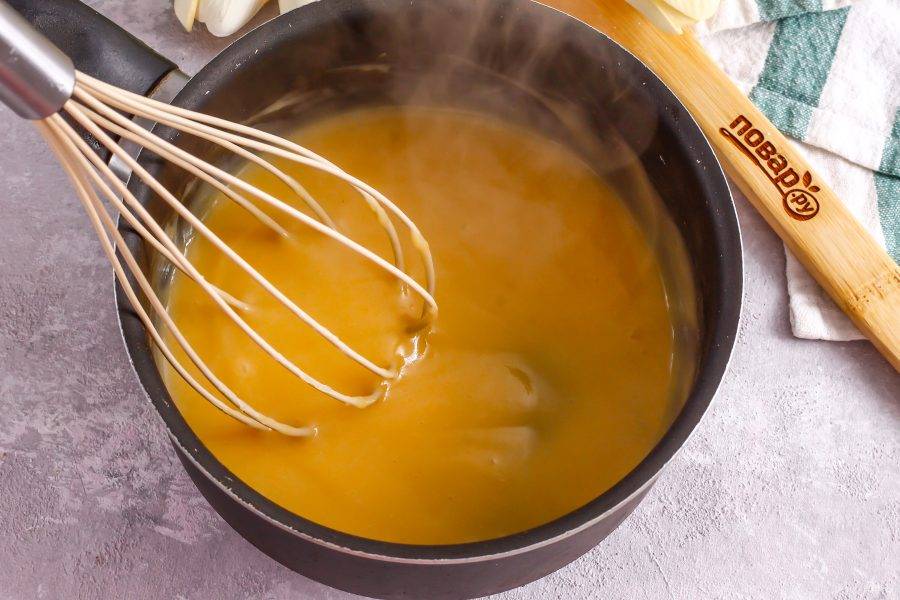 Поместите емкость на плиту, включая минимальный нагрев. В течение 5-6 минут заварите крем до густого состояния.