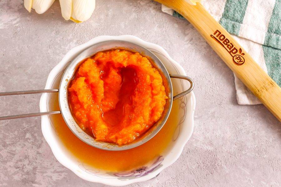 Протрите содержимое емкости через ситечко или отблендируйте в пюреобразную массу.