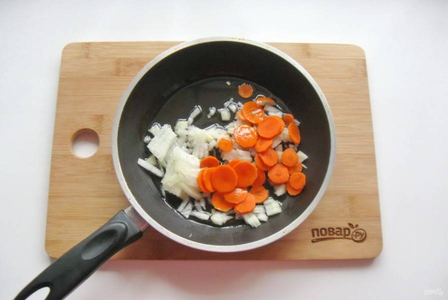 Морковь и репчатый лук очистите, помойте. Лук нарежьте как можно мельче, а морковь произвольно. Я нарезала кружками.