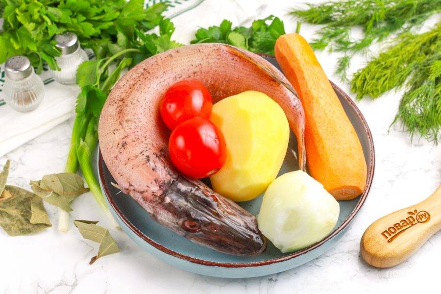 Подготовьте указанные продукты. Щуку очистите от чешуи и внутренностей, промойте в воде. Очистите овощи от кожуры и промойте вместе с помидорами.