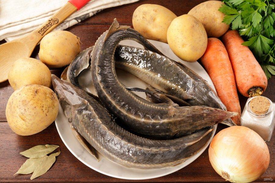 Затем стерлядь аккуратно распотрошите, хребёт у неё "опасный" и лучше срезать его ножницами. Промойте стерлядь под проточной водой. Рыба без костей и скелет у неё хрящевой, который потом съедается.