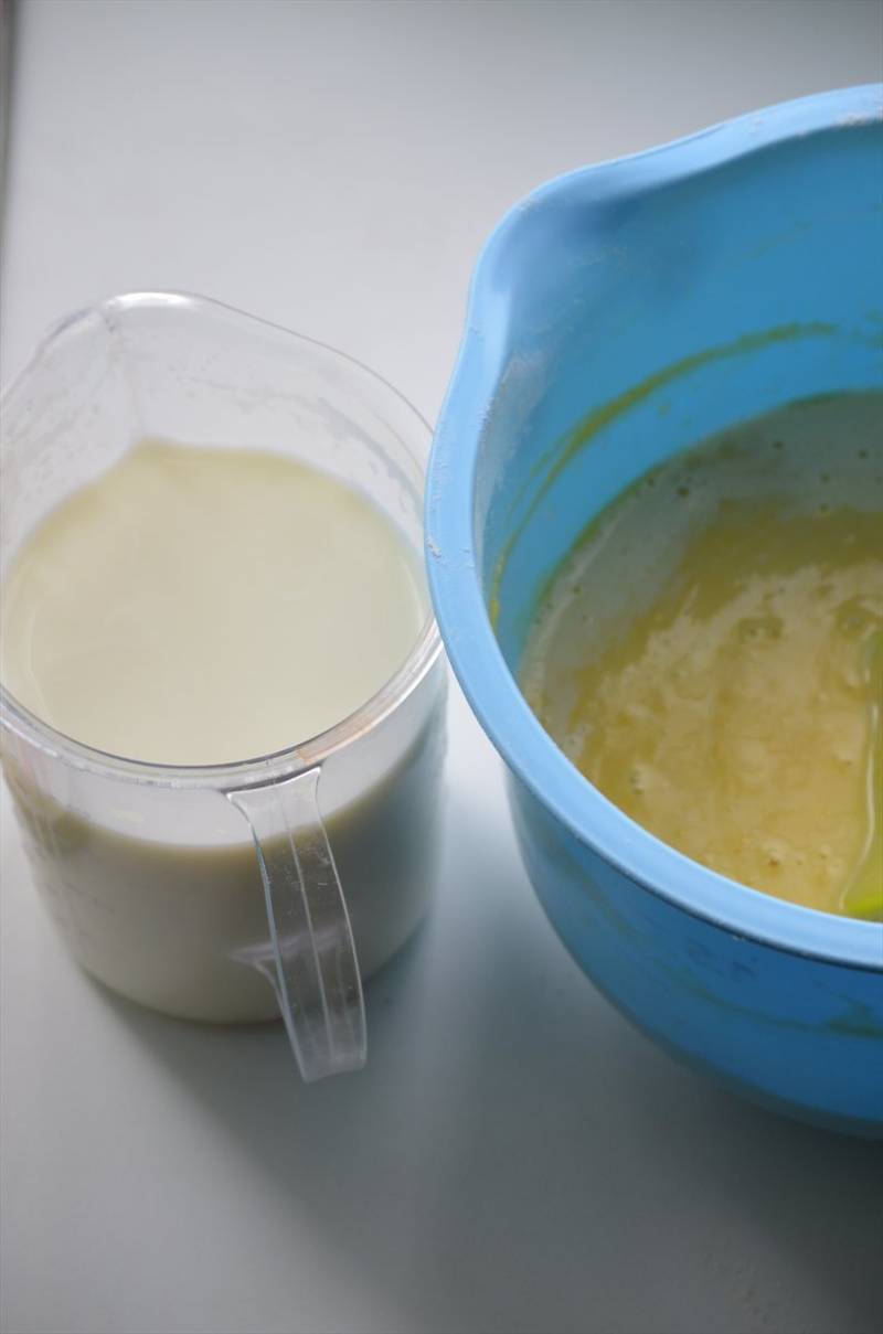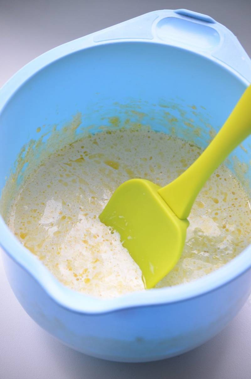 Масло растопить и охладить. Добавить масло в желтки , взбить.