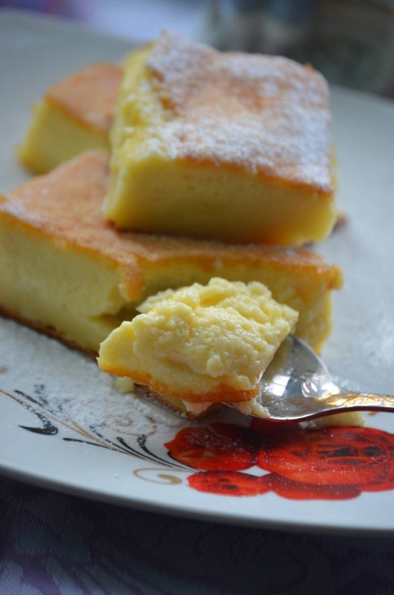 Вкуснoe, нежнoe лакомство!В процессе выпечки пирожное разделяется на ванильное суфле, нежный заварной крем и бисквит.