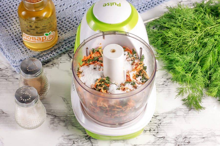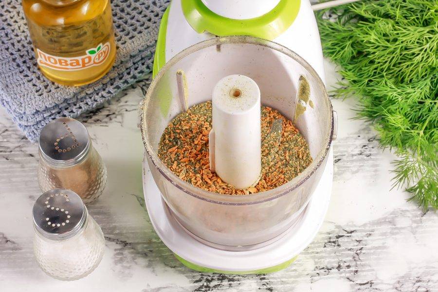 Пересыпьте их в чашу измельчителя или кофемолку, добавьте соль. Можно использовать йодированную соль и морскую.