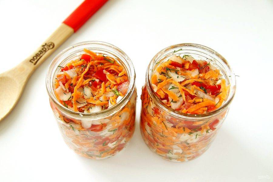 Закройте банки капроновыми или закручивающимися крышками и поставьте в холодильник на хранение. Используйте заправку с наступлением холодов по необходимости. Приятных вам заготовок!