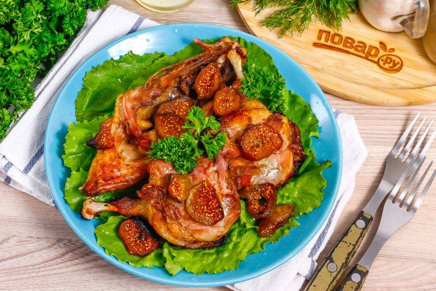 Сочное утиное мясо идеально гармонирует со сладким инжиром — попробуйте запечь такой дуэт в духовке и насладитесь его вкусом! Вам даже не потребуется гарнир — лишь свежая зелень или какой-нибудь соус.