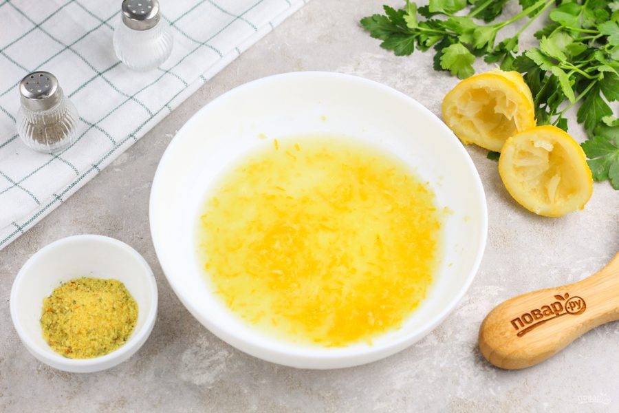 Лимоны ошпарьте кипятком. С одного цитрусового натрите цедру и выжмите сок.