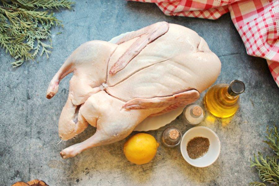 Подготовьте все необходимые ингредиенты для приготовления утенка табака.