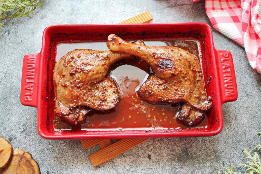 Снимите с формы фольгу, полейте получившимся соком и запекайте еще 10-15 минут, до желаемой корочки. Готовую утку в гранатовом соусе "Наршараб" подавайте сразу.