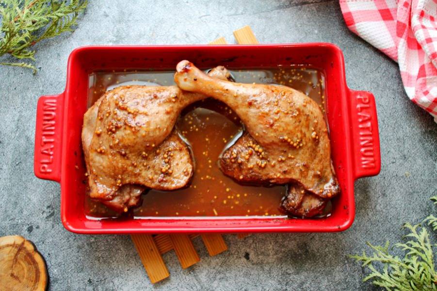 Полученным маринадом залейте утку и уберите в холодное место на три часа.