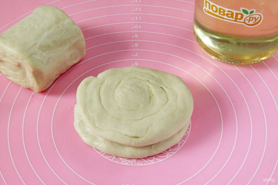 Каждую часть поставьте на срез и придавите рукой, придавая форму лепешки.