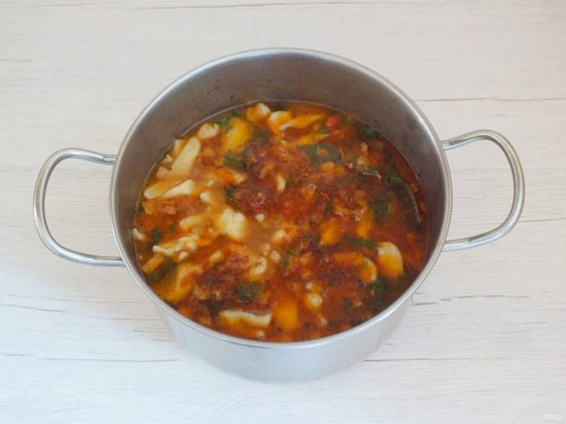 Перед подачей добавьте в суп свежую зелень и подавайте к столу.