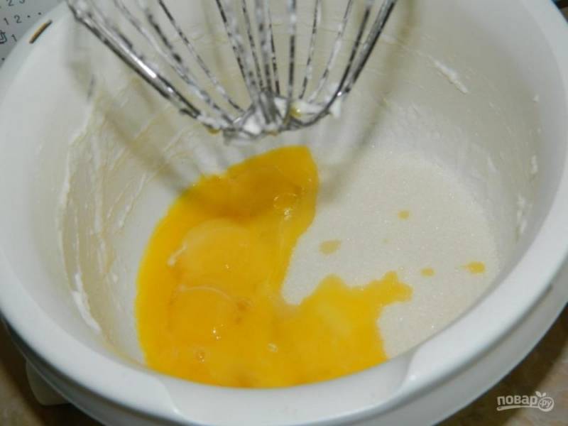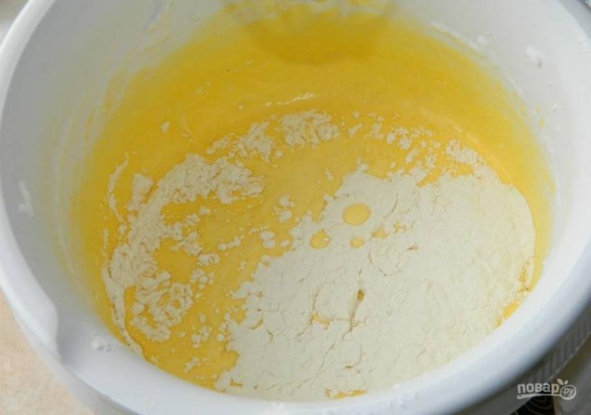 Добавьте мягкое сливочное масло и муку. Хорошо перемешайте тесто до однородного состояния.