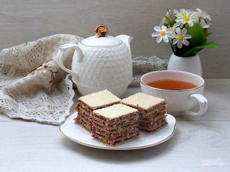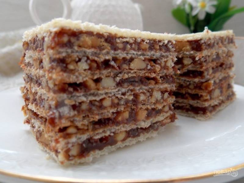 Этот тортик, сделанный из вафельных коржей и прослойки, похожей на грильяж, очень выручит, когда хочется сладкого, но нет возможности заняться выпечкой. Угощайтесь!