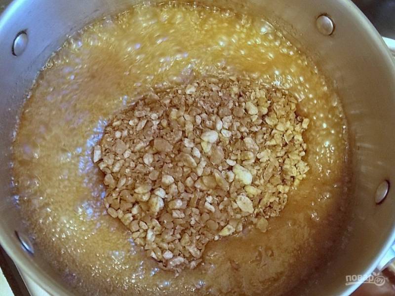 Всыпьте орехи в кипящую массу, перемешайте и варите еще 2 минуты.