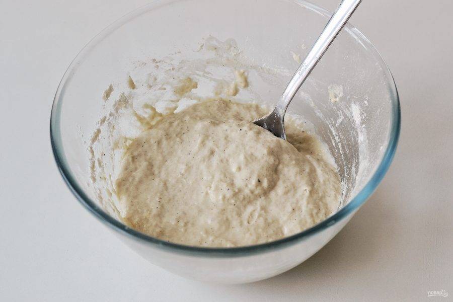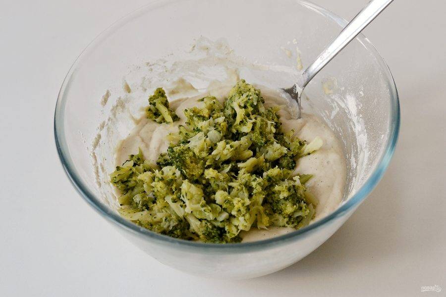 Добавьте измельченные брокколи в тесто, перемешайте.