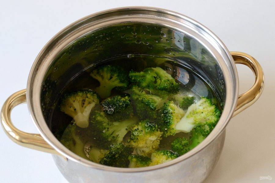 Брокколи отварите в кипящей воде 5-8 минут до мягкости. Затем измельчите вилкой на мелкие кусочки.