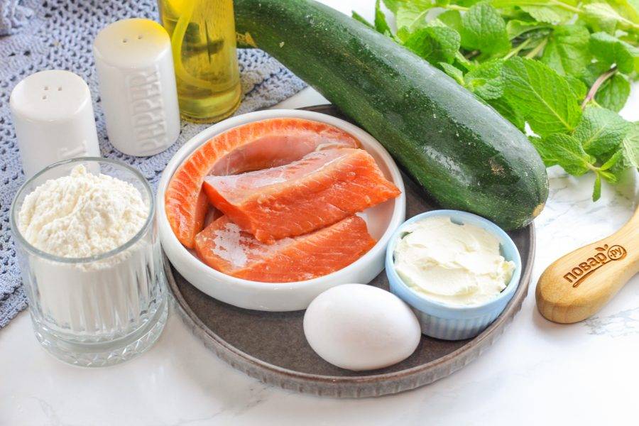 Подготовьте указанные ингредиенты. Красную рыбу желательно засолить заранее или приобрести слабосоленой, маринованной.