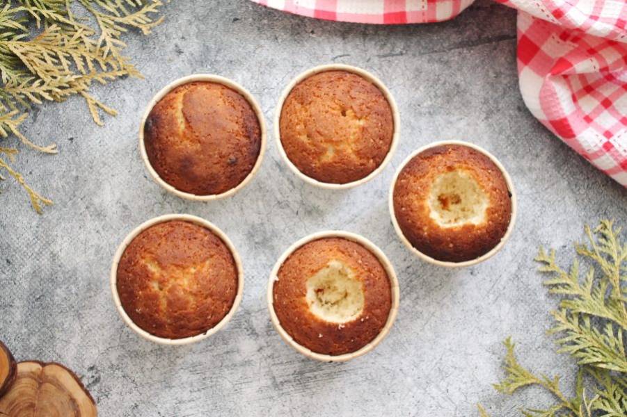 У готовых ванильных капкейков вырежьте серединку до середины.