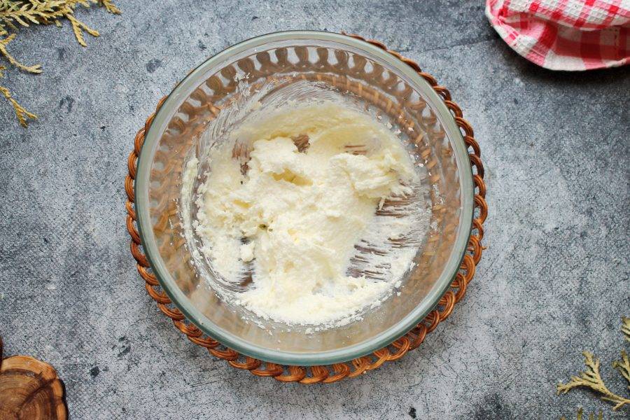 Мягкое сливочное масло соедините с сахаром, солью и взбейте в пышную массу.