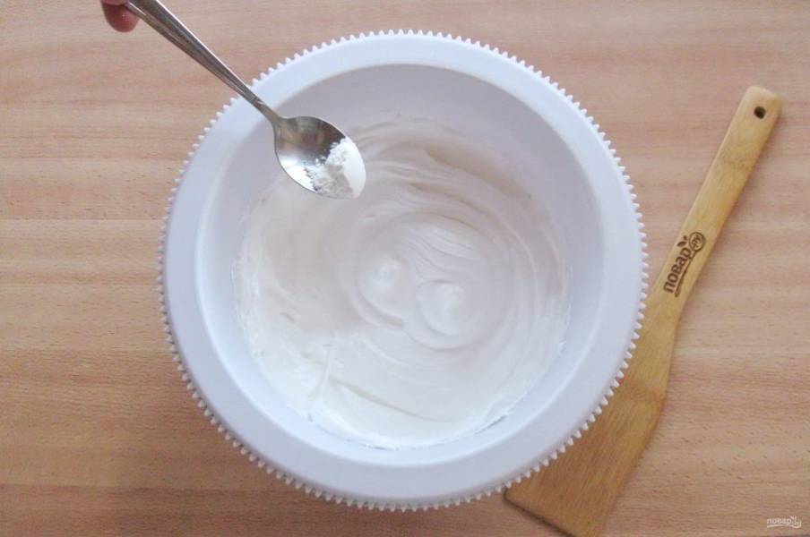 Добавьте щепотку соли и взбивайте белки до мягких пиков.