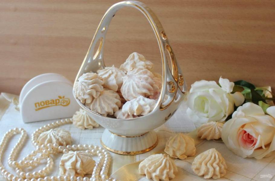 Ванильная меренга готова. Ароматное, нежное, хрустящее, рассыпчатое пирожное подавайте на десерт.