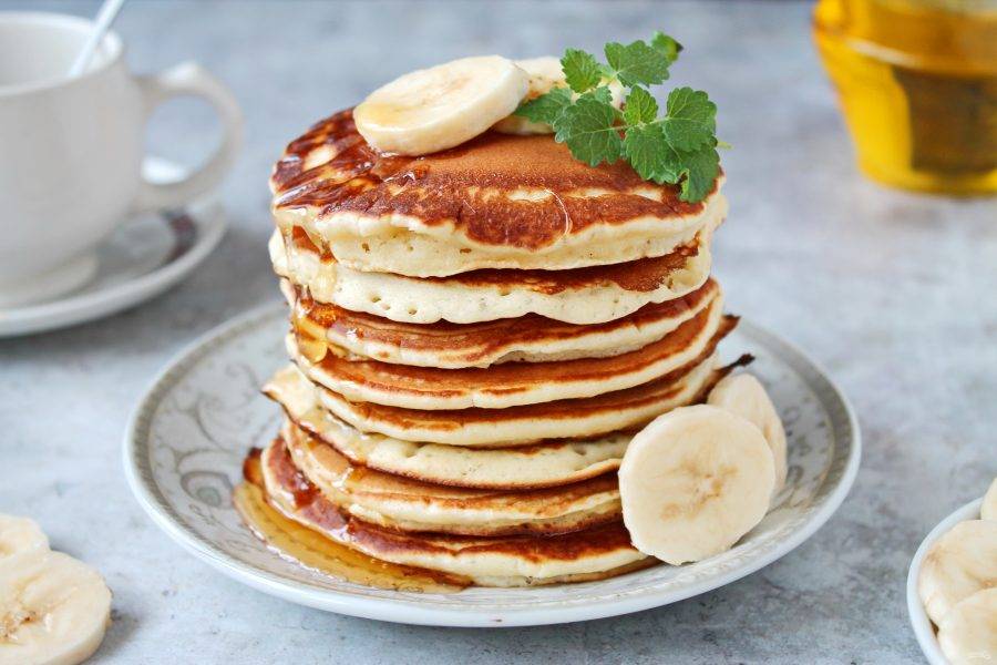 У меня получилось 12 штук. Горячие панкейки подавайте сразу на стол.