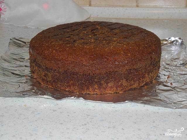 Готовый торт оставьте на ночь в холодильнике. А с утра украсьте его по своему желанию.