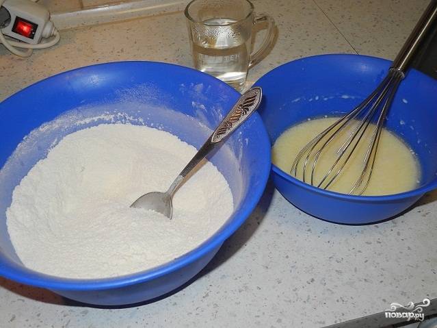 Добавьте к тесту кипяток. Ещё раз перемешайте, следите, чтобы не было комочков.
