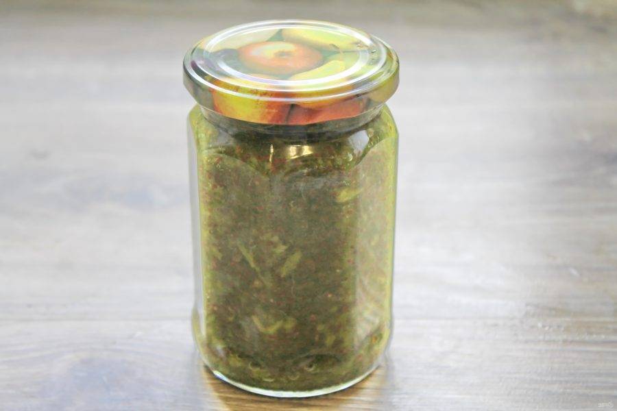 Извлеките банки из микроволновки, вылейте воду и переложите варенье. Закройте прокипяченными крышками. Хранить в темном месте, не выше 15 градусов. Из этого количества получается примерно 700 мл. варенья.