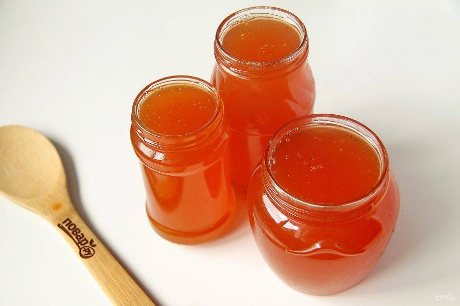 Пока варенье горячее, оно не очень густое, но по мере застывания будет сгущаться. Из указанного количества получается 1,5 литра варенья. Удачных заготовок!