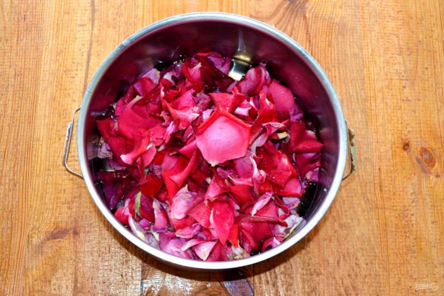 Лепестки выложите в холодную воду и оставьте на час. После немного обсушите.