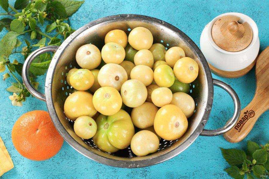 Физалис очистите и тщательно промойте под тёплой водой, чтобы убрать восковой налёт.