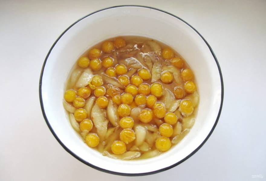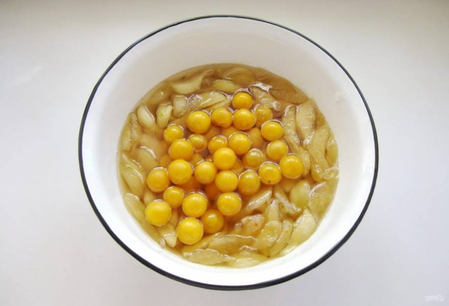 Добавьте алычу в таз с грушей и варите 10-15 минут.