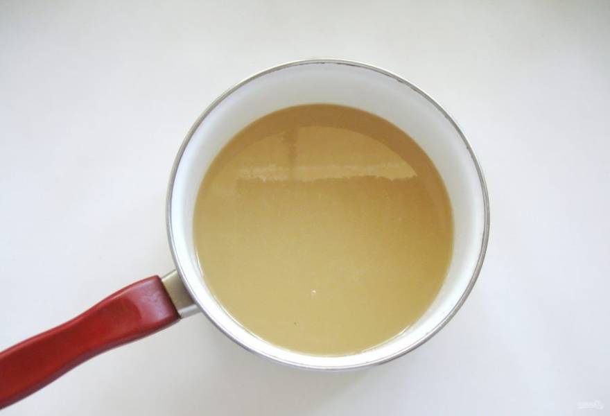 Сварите сироп. Для этого половину сахара выложите в кастрюлю и налейте воду. Поставьте на огонь. Постепенно растворите сахар в воде. Затем добавьте вторую половину сахара. Продолжайте варить сироп на небольшом огне, пока сахар полностью не растворится.