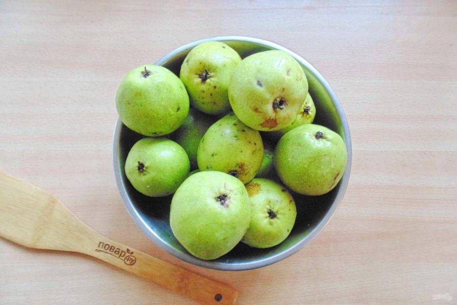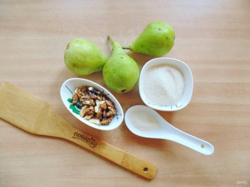 Подготовьте ингредиенты для приготовления варенья из груш с орехами.