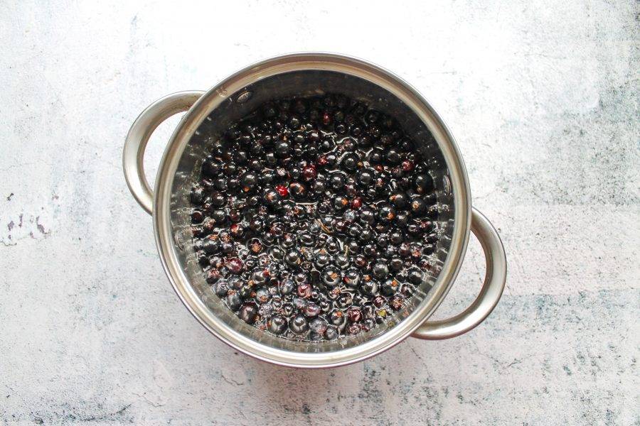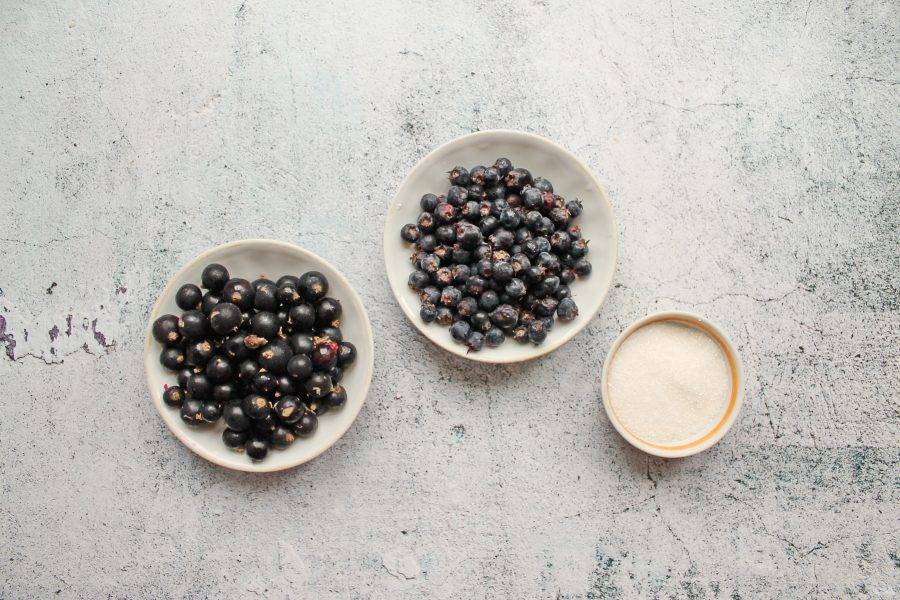 Подготовьте все необходимые ингредиенты для приготовления варенья из ирги и смородины. Ягоды переберите, сполосните и обсушите.